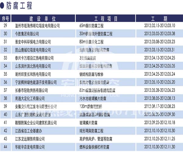 宏顺建设工程有限公司是国家批准成立的专业高空作业企业:承揽过(国内.国外)烟囱新建、烟囱防腐、砖烟囱新建、烟囱改造、烟囱维修、烟囱脱硫防腐、烟囱拆除加高、烟囱滑膜等高空作业工程。具有“不搭脚手架 、 不需要停产”施工特点。
