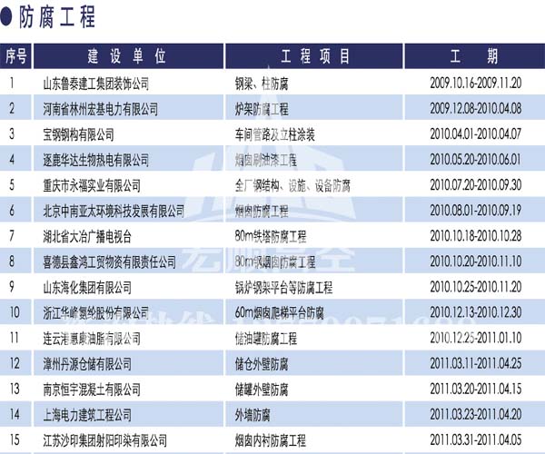 资质齐全 具有建筑工程施工总承包壹级资质、防水防腐保温工程专业承包壹级资质,钢结构专业承包贰级,公司整体通过了质量管理体系认证... 了解详情